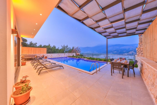 Kalkan Yeşilköy mevkisinde bulunan sessizliğin, huzurun hakim olduğu bir villada tatil isteyen çiftlerimiz ve aileler için oldukça uygun bir seçenektir. Muhafazakar villalar ve balayı villaları kategorisinde yer alan villamız, 2 yatak odası ile 5 kişilik konaklama kapasitesine sahiptir. Havuzu korunaklı ve bahçesi dışarıdan görünmeyen Villa Zirve 3, mahremiyete önem veren çiftlerimiz için huzur dolu bir tatil fırsatı sunuyor. Ayrıca misafirlerimizin rahatlaması için ebevyn yatak odasında 2 kişilik jakuzi konforu da sağlamaktadır.