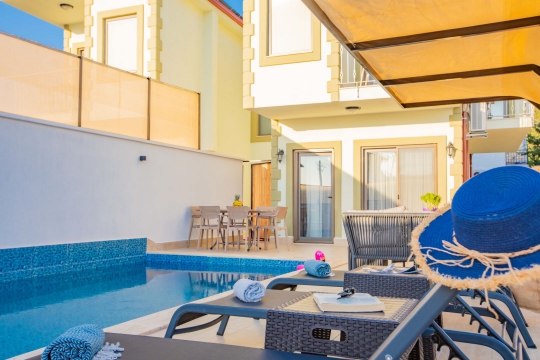 Kaş /Çukurbağ bölgesinde yer almaktadır. 2 yatak odası ile 5 kişilik konaklama kapasitesine sahip olan villamız genellikle muhafazakar aileler ve balayı çiftleri tarafından tercih edilmektedir. Villamızın muhafazakar özelliklere sahip olması, havuz, teras ve bahçe alanının dışardan görünmesini engellemektedir. Bu sayede tatiliniz esnasında villanın havuz ve bahçe alanı dışarıdan görünmemektedir. Bu da ailenizle rahat bir tatil yapmanıza olanak sağlamaktadır. Villamız genel özellik ve konsept bakımından balayı misafirlerimizin ve muhafazakar ailelerimizin tatilini en iyi şekilde geçirmesi için özel olarak dizayn edilmiştir. Suit yatak odasında bulunan çift kişilik jakuzi sayesinde yıl boyu yaşadığınız stres ve yorgunluğu atmak hem size hem de sevdiklerinize oldukça iyi gelecektir.