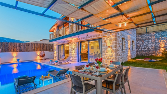 Villa Çimen 2022 yılında hizmete açılan sizlerin düşlerinizi ve yaz tatilinizi süsleyecek olan bu yeni villamız Kalkan Sarıbelen bölgesinde yer almaktadır. 2 yatak odasına sahip tatil villamız 4 kişilik konaklama kapasitesine sahiptir. Doğa içinde bir konuma sahip olan tatil villası havuz alanı bahçe alanı ile sizlere keyifli bir tatil ortamı sunmaktadır. Özellikle aileler için ideal bir seçenek olan muhafazakar hassasiyete sahip misafirlerimiz içinde uygun bir tatil ortamı sunmaktadır.