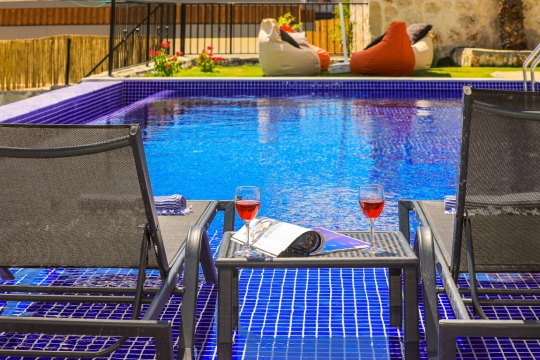 Salon : Havuz Görünümlü Oturma Grubu, Klima, Uydu TV, İnternet