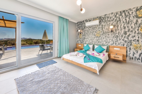 Kaş Gökseki mevkiinde konumlanmış, lüks villa 2 yatak odalı, 4 kişilik kapasiteye sahiptir. Kaş'ta doğa ve deniz manzarasına sahiptir. Şık dekorasyonu ve manzarası ile diğer villalardan oldukça farklıdır. Bir tane yatak odasında jakuzisi bulunmaktadır.