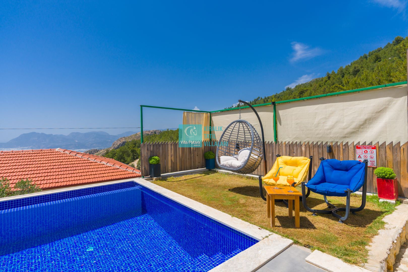 Genel Notlar : Doğa içerisinde yer alan villalarımızın tamamı böcek, sinek, kelebek, haşereler vb. için düzenli olarak ilaçlanmaktadır. Doğa içerisinde konuma sahip olan villalarda, merkezde yer alan villalara nazaran böcek, sinek, kelebek, haşereler vb. çıkma ihtimali daha yüksektir. Bu not sadece bu villa ile ilgili değildir. Doğa içerisinde konuma sahip olan tüm villaların bilgilerinde yazılmaktadır.
