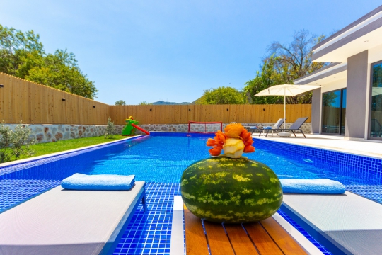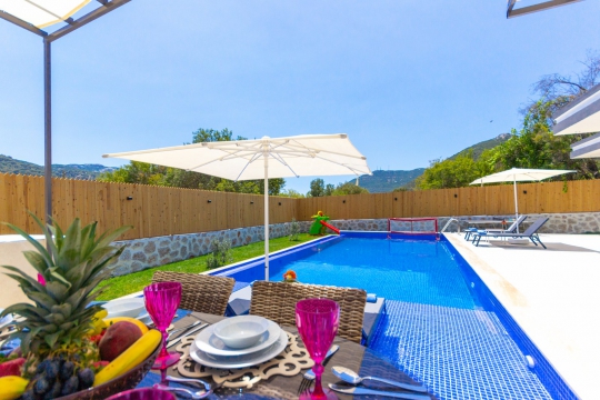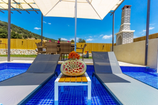 Kalkan Sarıbelen mevkisinde bulunan kiralık balayı villası, oldukça geniş yemyeşil bir bahçeye sahip olan villamız, tertemiz doğası ve sessiz sakin konumuyla unutulmaz bir tatil isteyen ailelerimiz için oldukça uygun bir seçenektir. Muhafazakar villalar ve balayı villaları kategorisinde yer alan villamız, 2 yatak odası ile 5 kişilik konaklama kapasitesine sahiptir. Havuzu korunaklı ve bahçesi dışarıdan görünmeyen Villa İdil Sarıbelen, mahremiyete önem veren ailelerimiz için huzur dolu bir tatil fırsatı sunuyor. Ayrıca yatak odasında misafirlerimizin rahatlaması için 2 kişilik jakuzi konforu da sağlamaktadır.