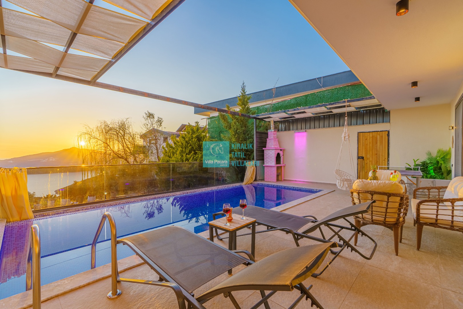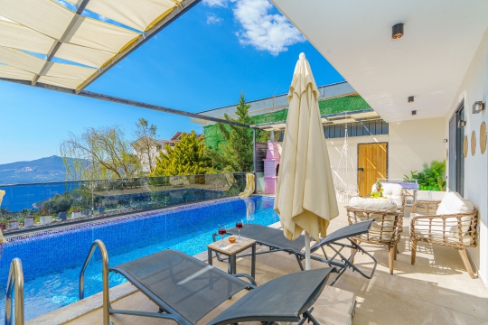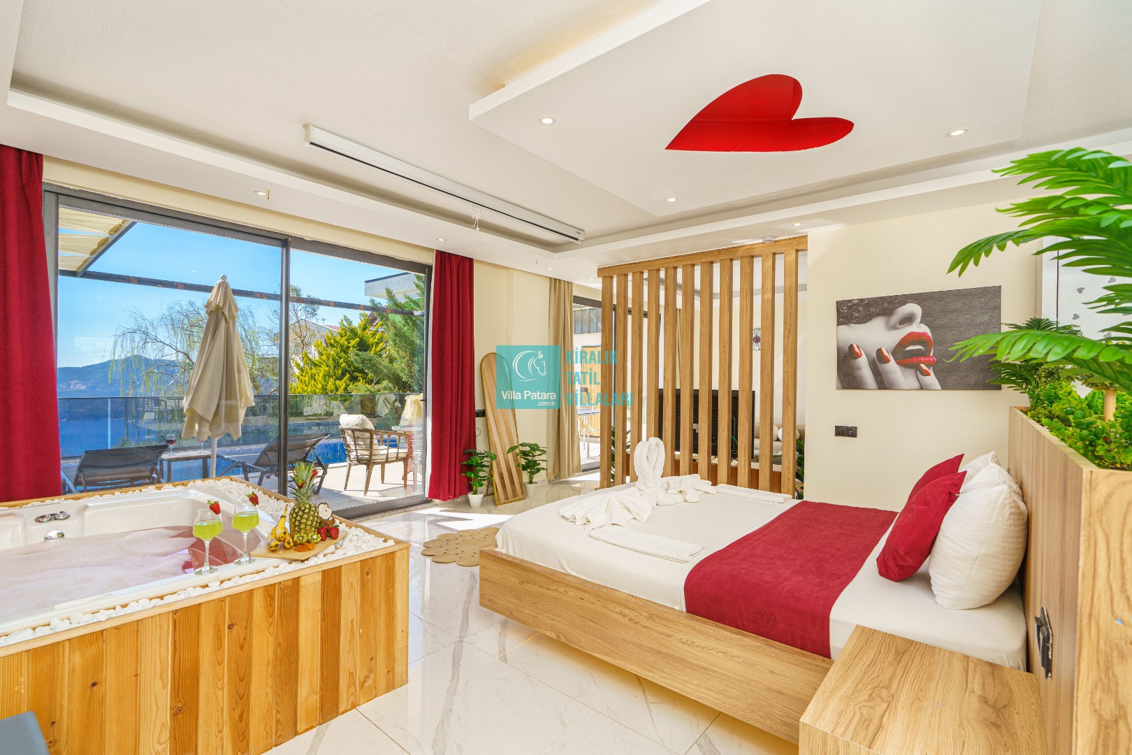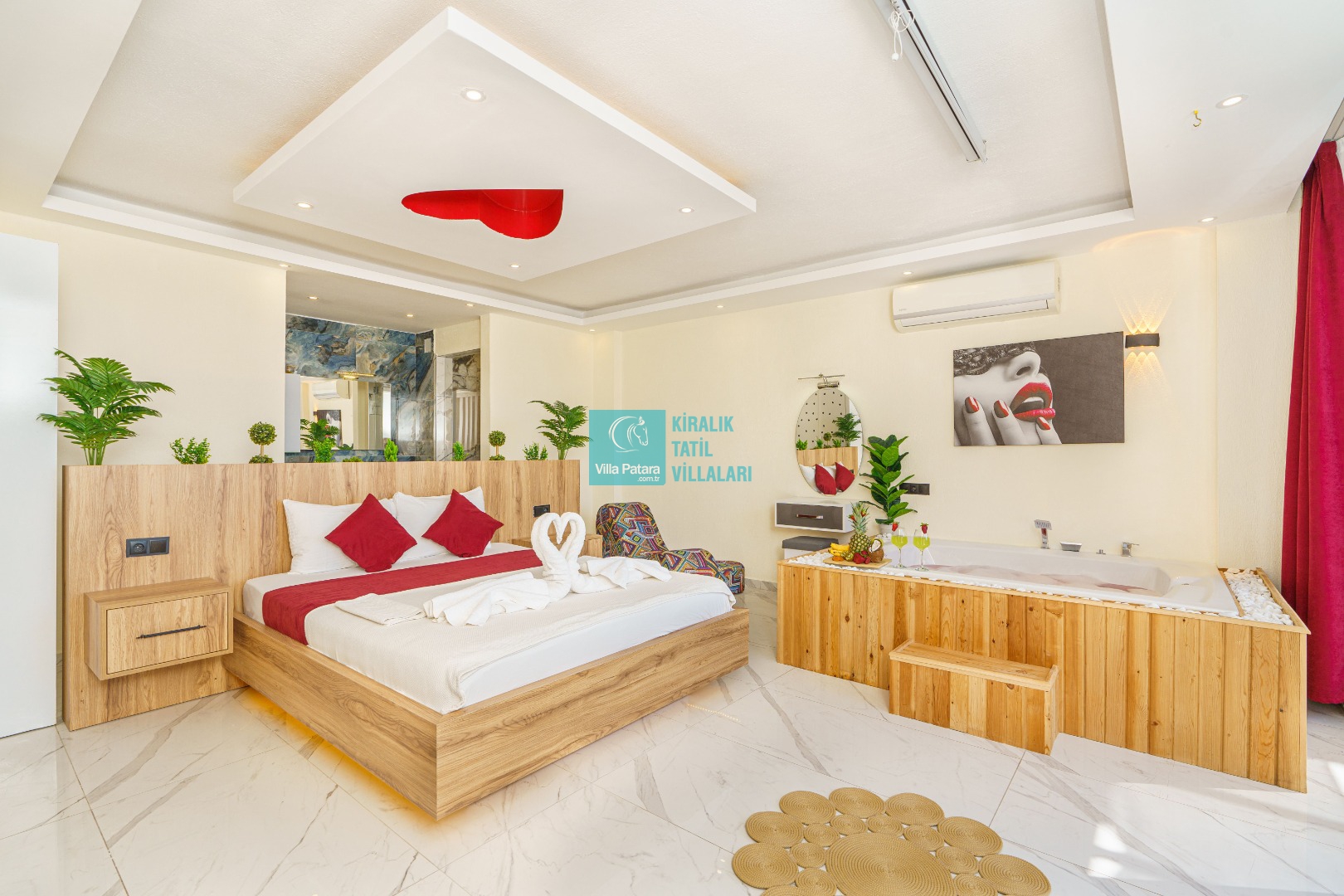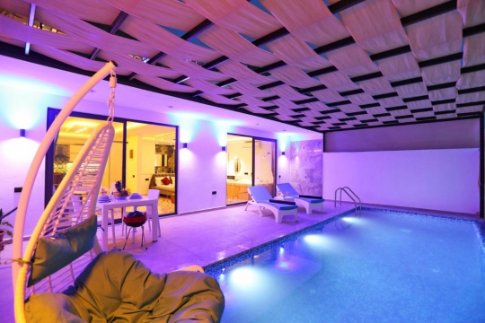 son derece korunaklı bir havuzu var kimseler sizi görmeden sevdiğiniz insanla gündüz gece fark etmeksizin yüzebilirsiniz bunun yanı sıra villlada