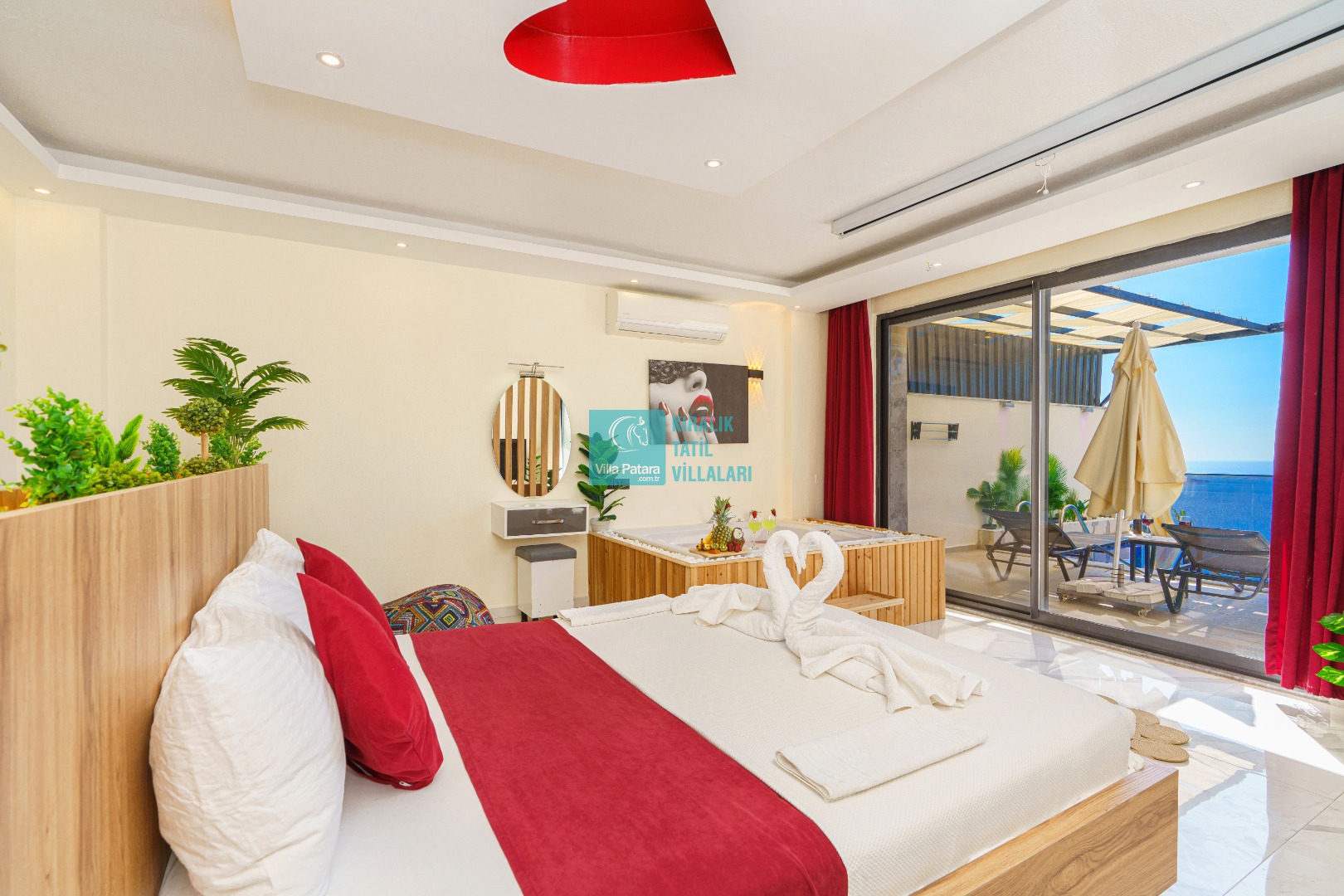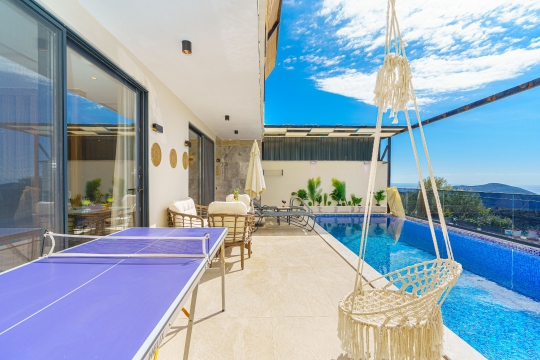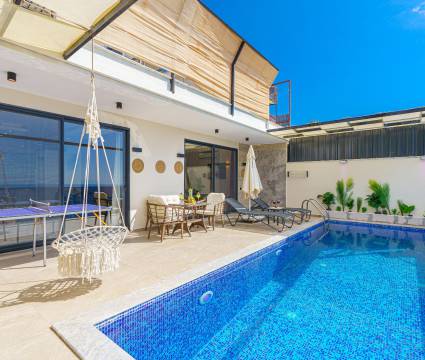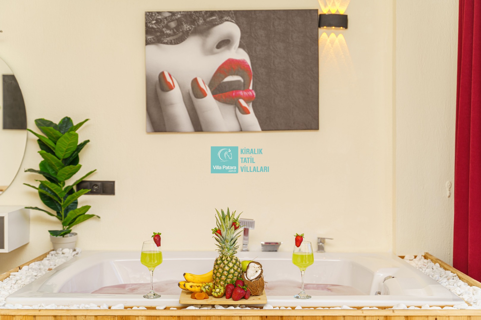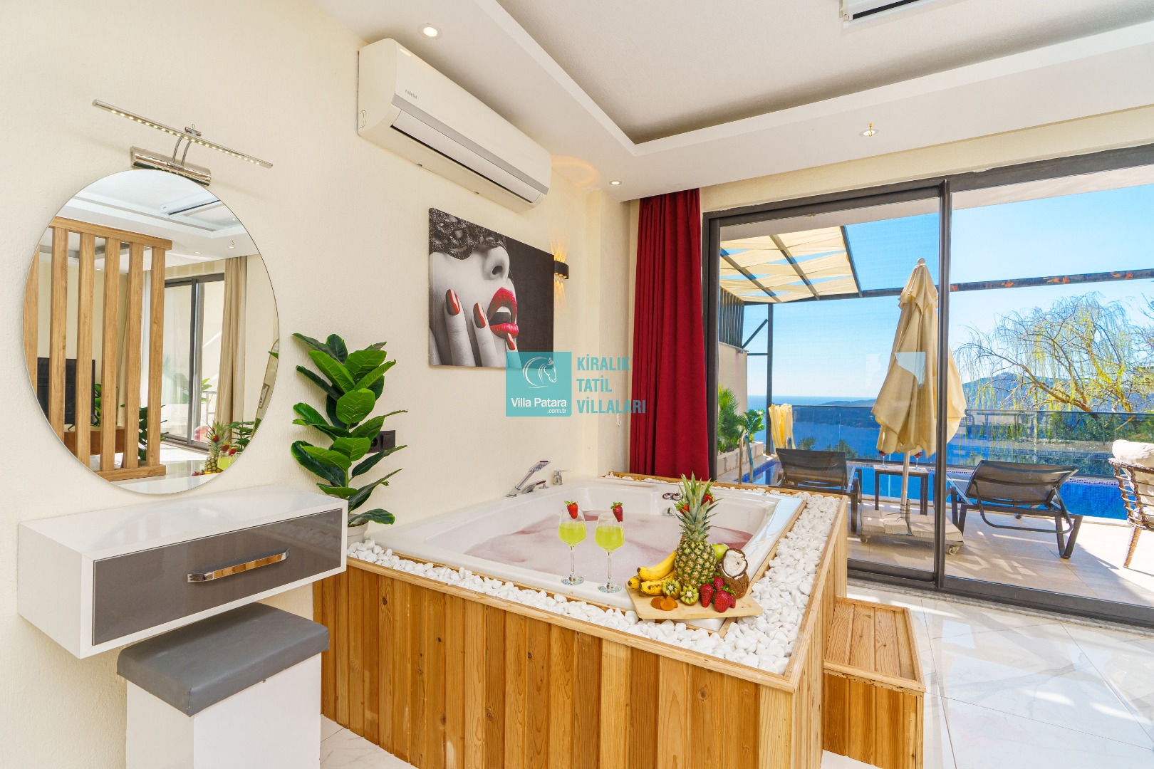 son derece korunaklı bir havuzu var kimseler sizi görmeden sevdiğiniz insanla gündüz gece fark etmeksizin yüzebilirsiniz bunun yanı sıra villlada