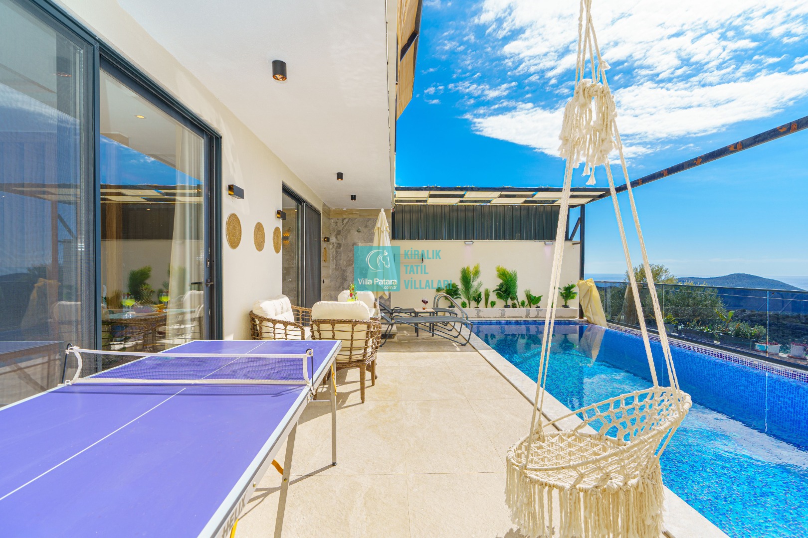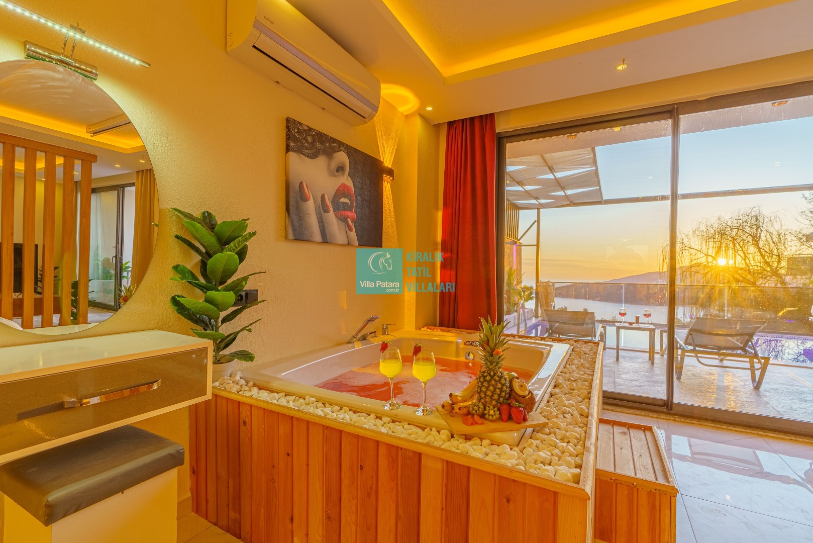 birde çok özel jakuzi var havuzda yüzerken yer gök mavi zira deniz manzarasına karşı yüzüyorsunuz villanın hemen yanı başında salıncak için de ne denir ki