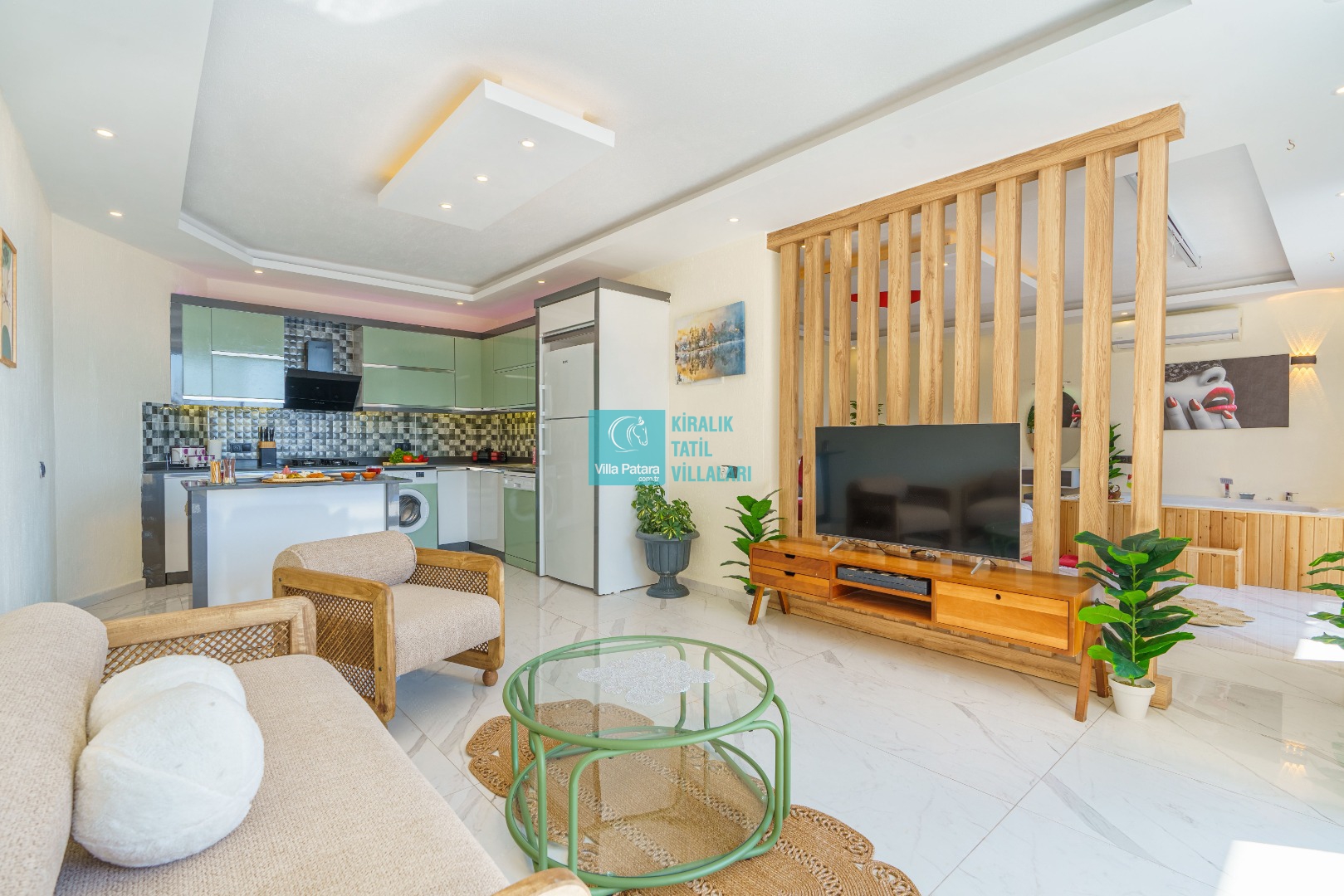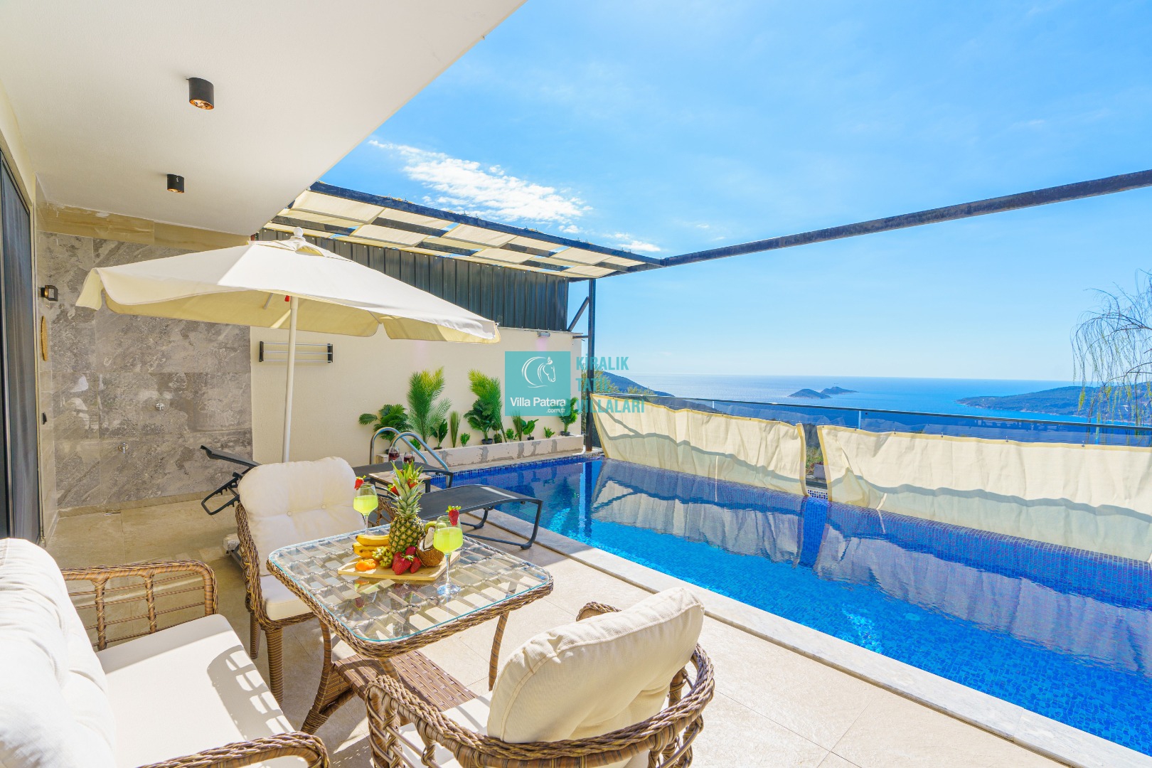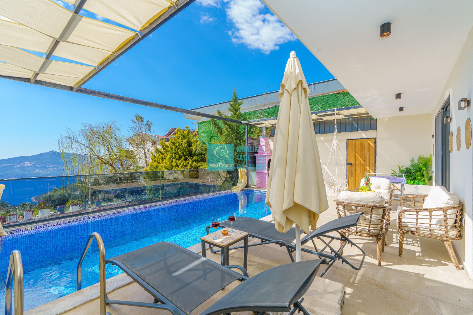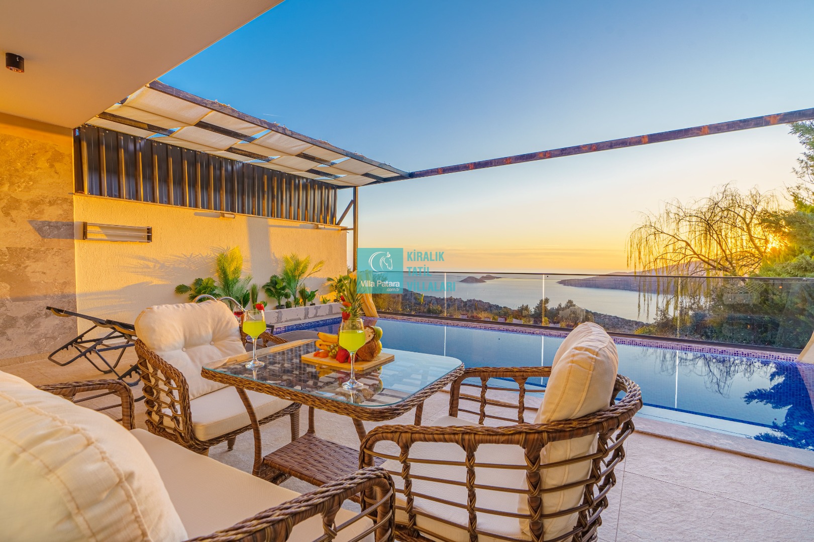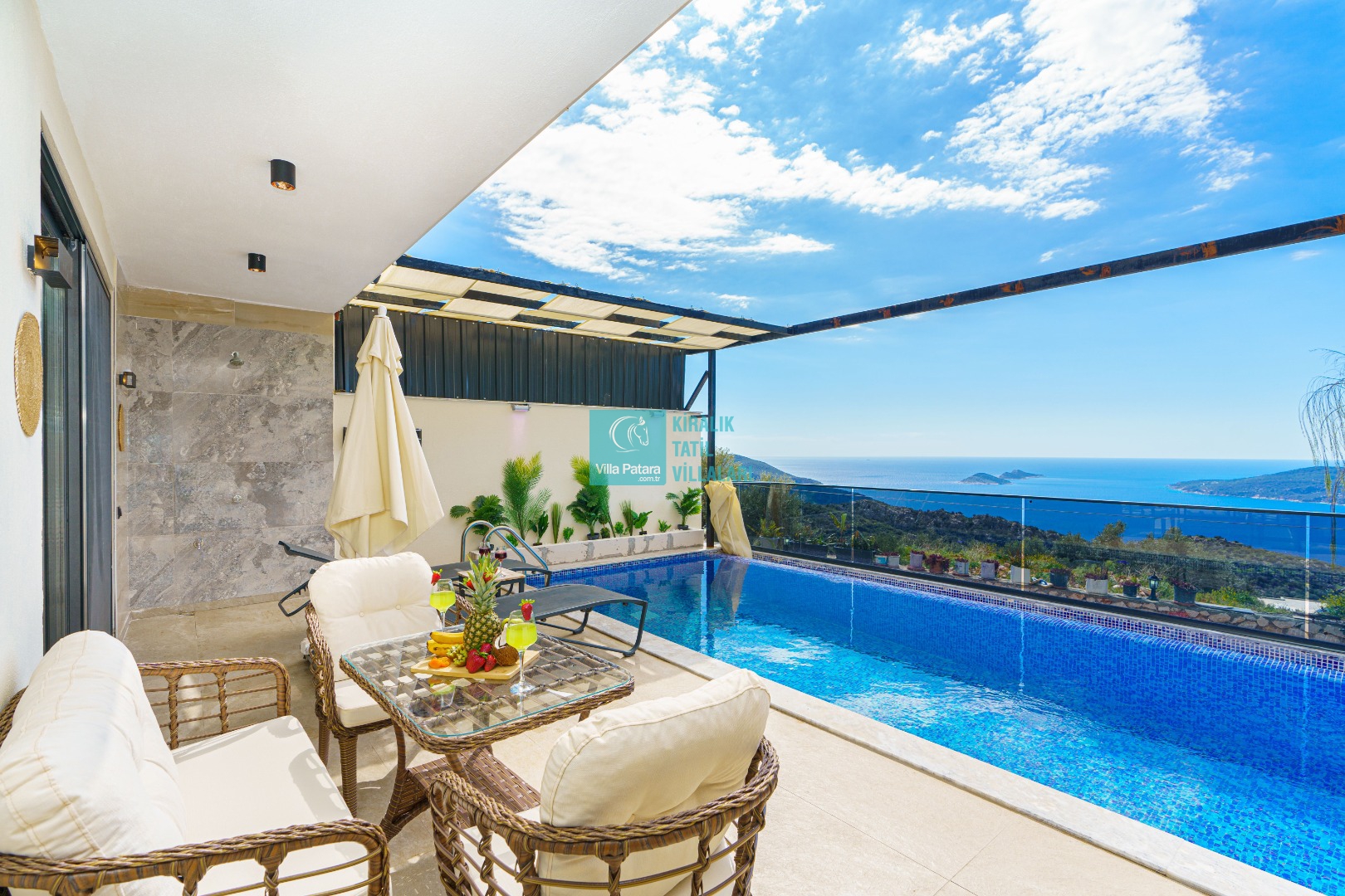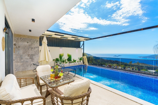 Antalya'nın Kaş ilçesinin Kalkan semtinde Kördere mevkinde yer alan benzersiz bir villa karşımızda dış yokuşlardan çıkıp villaya geldiğinizde