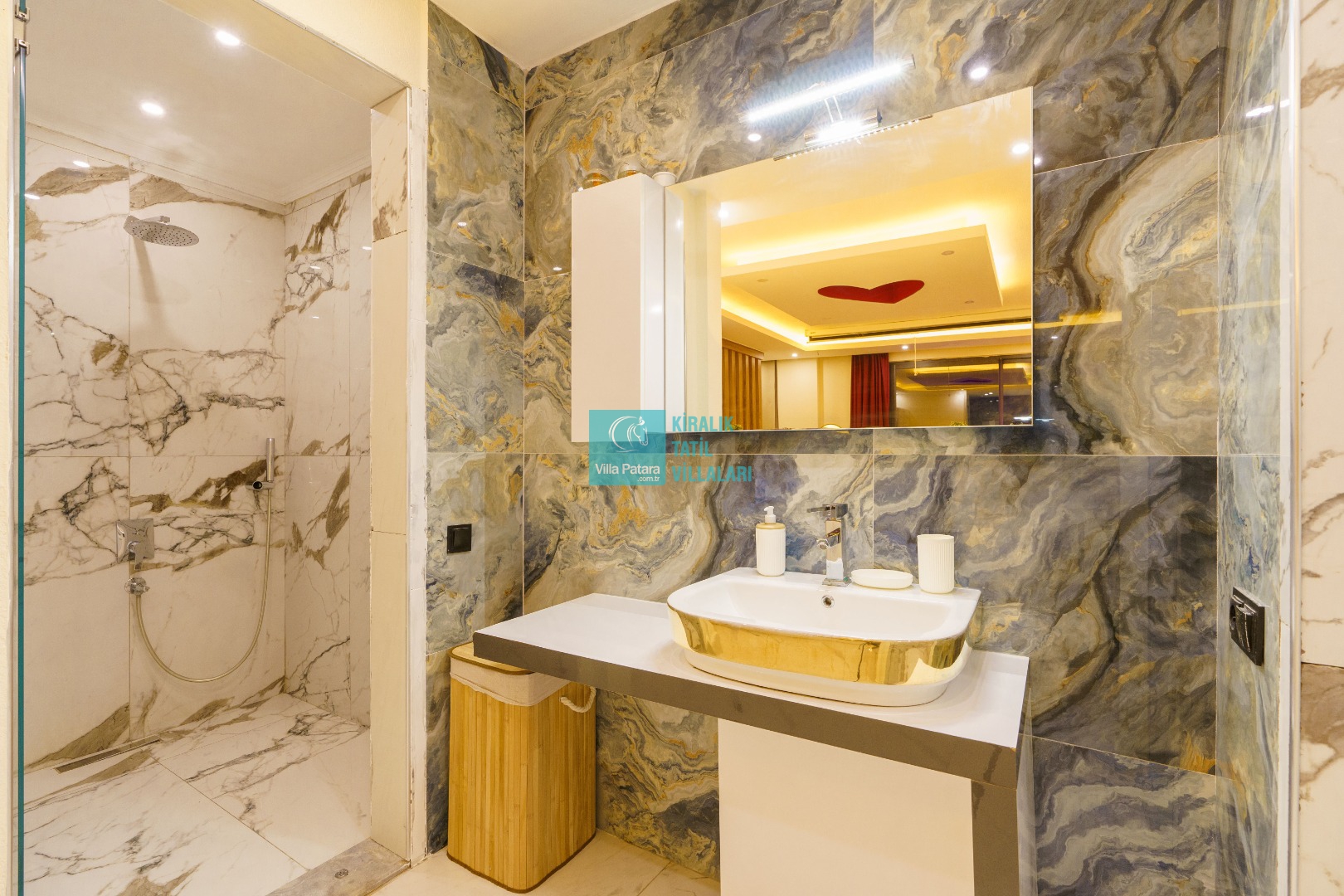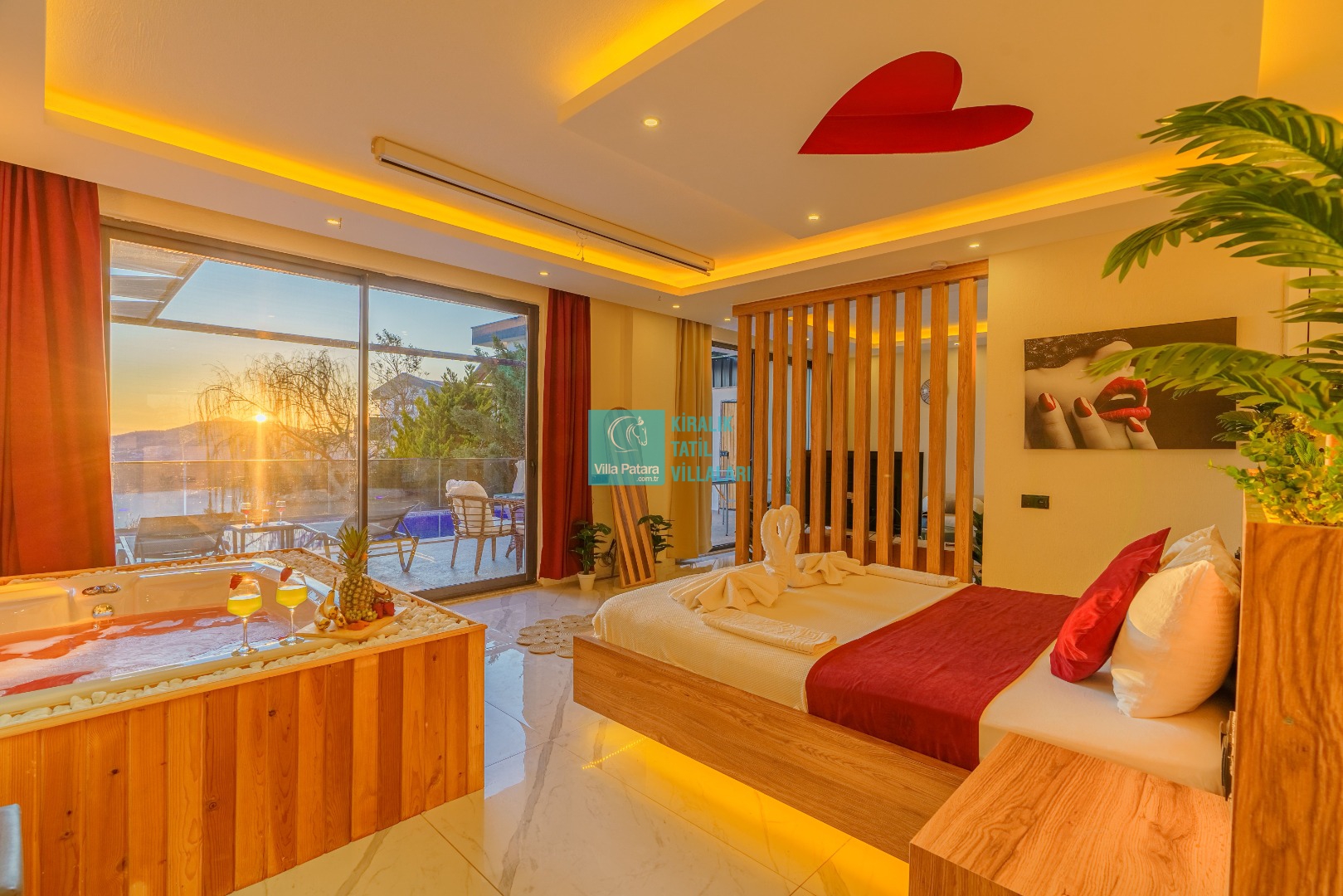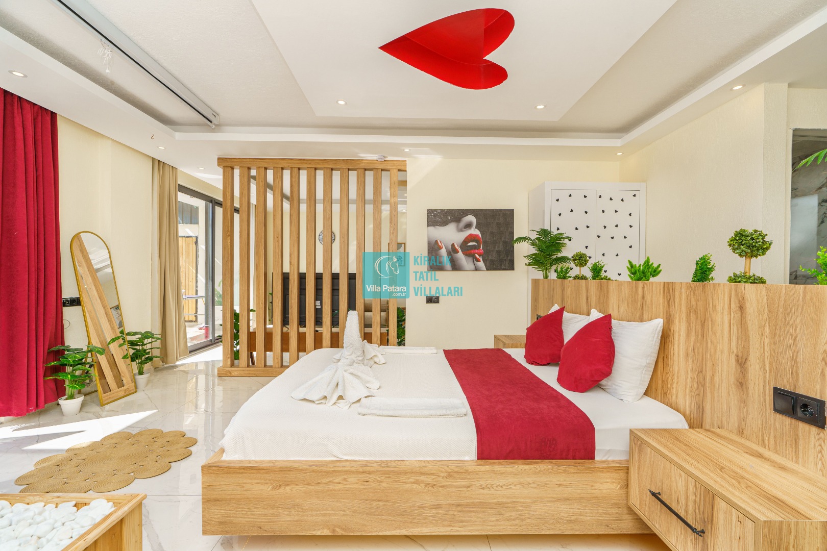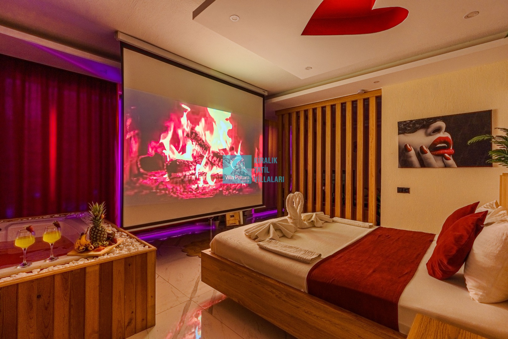 gördüğünüz her şey sizi mest edecek bu bir balayı villası her şey yeni evlenenler için düşünülmüş sadece 2 kişilik ve 1 yatak ve 1 banyo bulunuyor.
