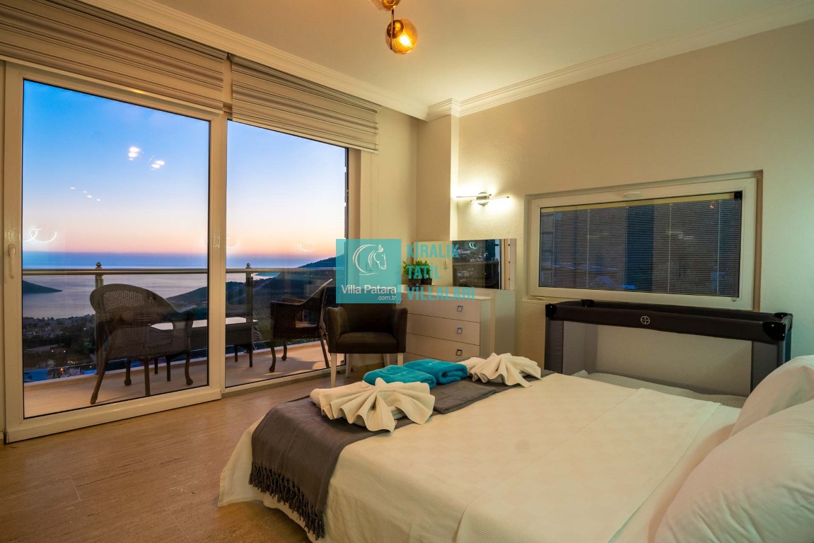 Villa in the Sky, Kalkan şehir merkezinin hemen üstünde yer alan, 5 yatak odalı, çok geniş sonsuzluk havuzuna ve muhteşem manzaralara sahip bir villadır. Kalkan Körfezi’ne tamamen hakim lokasyonu ve bulunduğu yükseklik sebebiyle neredeyse her bölümünde kesintisiz deniz manzarasına sahiptir. Ekstra beşik ve çocuk yatağıyla Villa in the Sky’da 12 kişi kapasiteye kadar rahatlıkla konaklama sağlanabilir. Ayrıca, oyun odası, spor ekipmanları, masa tenisi, langırt gibi farklı yaş gruplarını eğlendirebilecek ekstra özellikler mevcuttur.