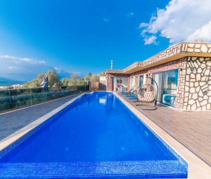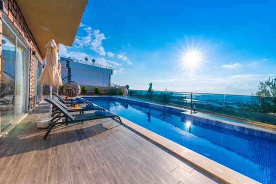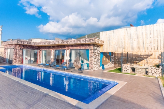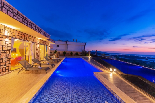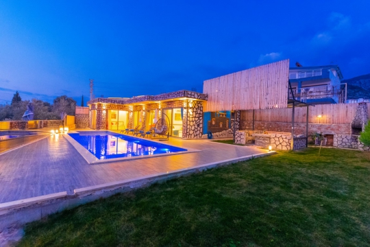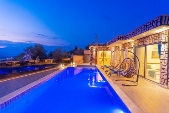 Villa İnci Duo, Kalkan Çavdır mevkiinde konumlanmakta olan doğa manzarasına hakim kiralık villalarımız arasında yer almaktadır. Şık ve konforlu bir şekilde dizayn edilen yazlık villamızda 2 adet yatak odası bulunmakta olup, 4 kişiye konaklama imkanı sağlamaktadır. Yatak odalarından bir tanesinde tüm yılın yorgunluğunu atabileceğiniz jakuzi yer almaktadır. Havuz ve havuz terası korunaklı bir hale getirilmiştir. Dışarıdan bir kimse tarafından görünmemektedir. Dış özel yüzme havuzuna entegre sığ havuz yer almaktadır. Muhafazakar balayı çiftleri ve çekirdek aileler rahatlıkla tercih edebilirler. Havuz terasında muhteşem çam ağaçların karşıladığı doğa içerisinde sessiz ve keyifli bir tatil için Villa İnci Duo 'ü tercih edebilirsiniz.