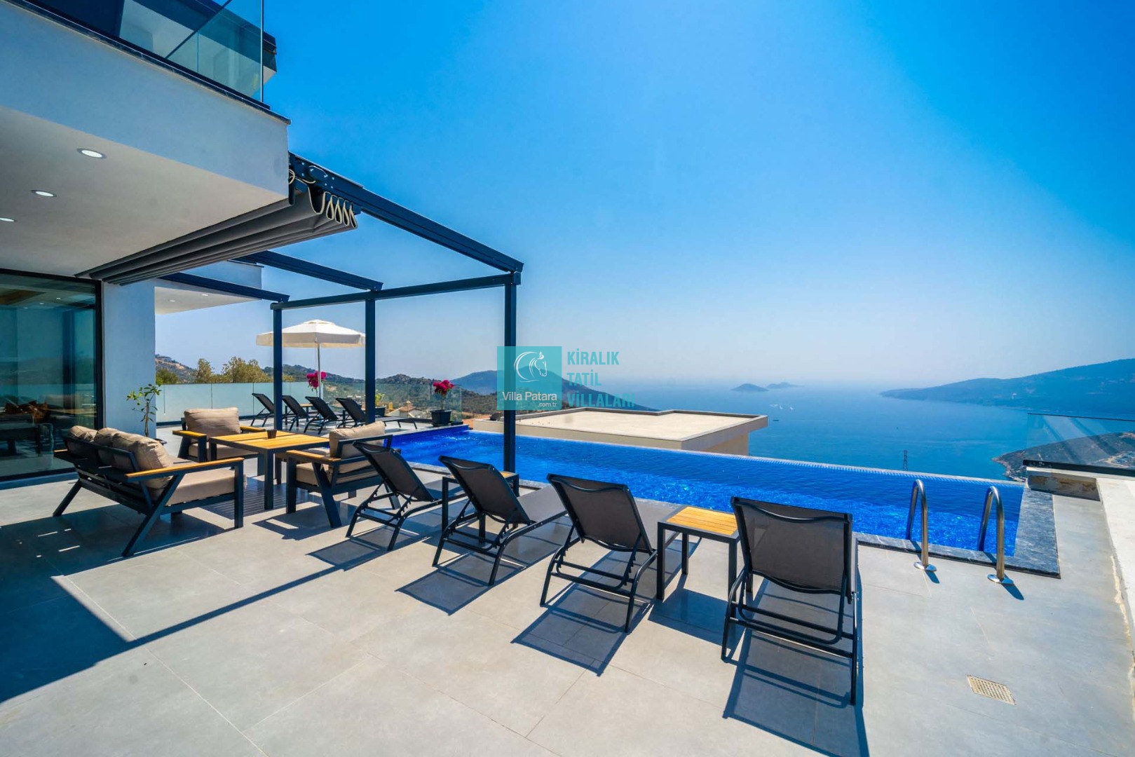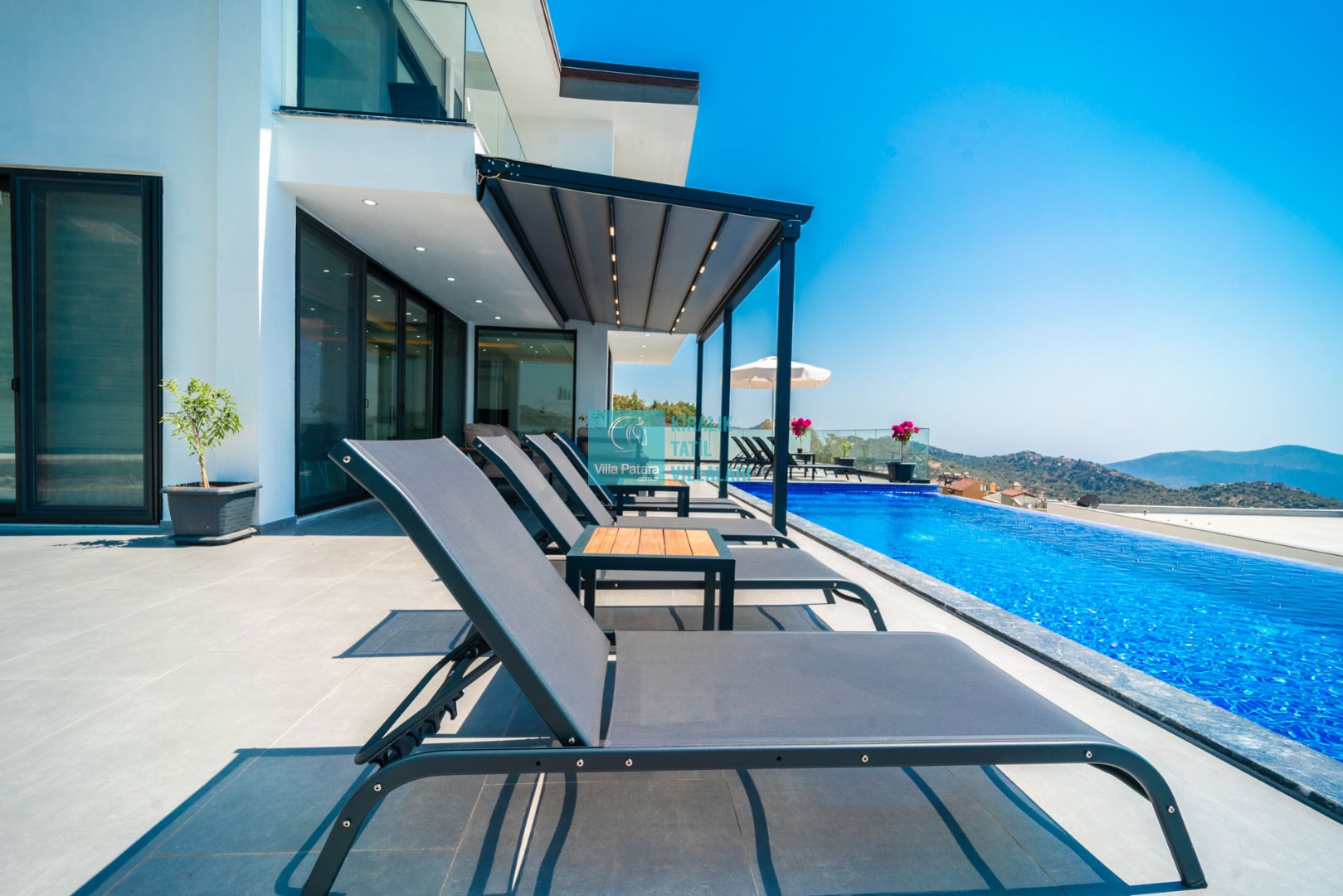 Villa İnos 1, Antalya-Kaş Kalkan mevkiinde konumlanmakta olup 4 yatak odası ve 8 kişilik konaklama kapasitesine sahiptir. Muhteşem doğa ve deniz manzarasına sahip villamızda jakuzi ve sonsuzluk havuzu özellikleri de bulunmaktadır. Modern ve şık tasarımıyla ön plana çıkan lüks villamız kalabalık aile ve arkadaş grupları için ideal bir seçenektir.