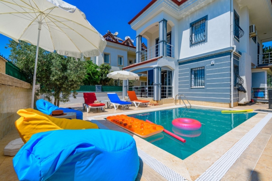 Fethiye haftalık kiralık tatil villası Villa İpek, merkezi konumu ve kişi kapasitesi ile misafirlerimizin ilk tercihleri arasında yer almaktadır.