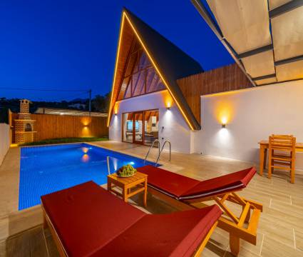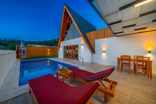 Villa İrbeç 1, Kalkan Üzümlü mevkiinde 1 yatak odalı 2 kişi kapasiteli muhafazakar, doğa manzaralı size özel kiralık villamızdır. Balayı çiftlerimiz için özel olaralk dizayn edilen villamızın havuz ve bahçe terası korunaklı olup dışarıdan görünmemektedir. Ahşap tasarımlı villamız en ince ayrıntısına kadar düşünülerek eksiksiz araç-gereçli ve full eşyalı olarak dizayn edilmiştir. Size özel havuzu sayesinde tüm yılın vermiş olduğu yorgunluğu üzerinizden atabilecek ve tatilinizin hiç bitmemesi isteğini uyandıracaktır. Doğa içerisinde sizlere ferah ve konforlu bir tatil imkanı sunan villamız siz değerli misafirlerimizi beklemektedir.