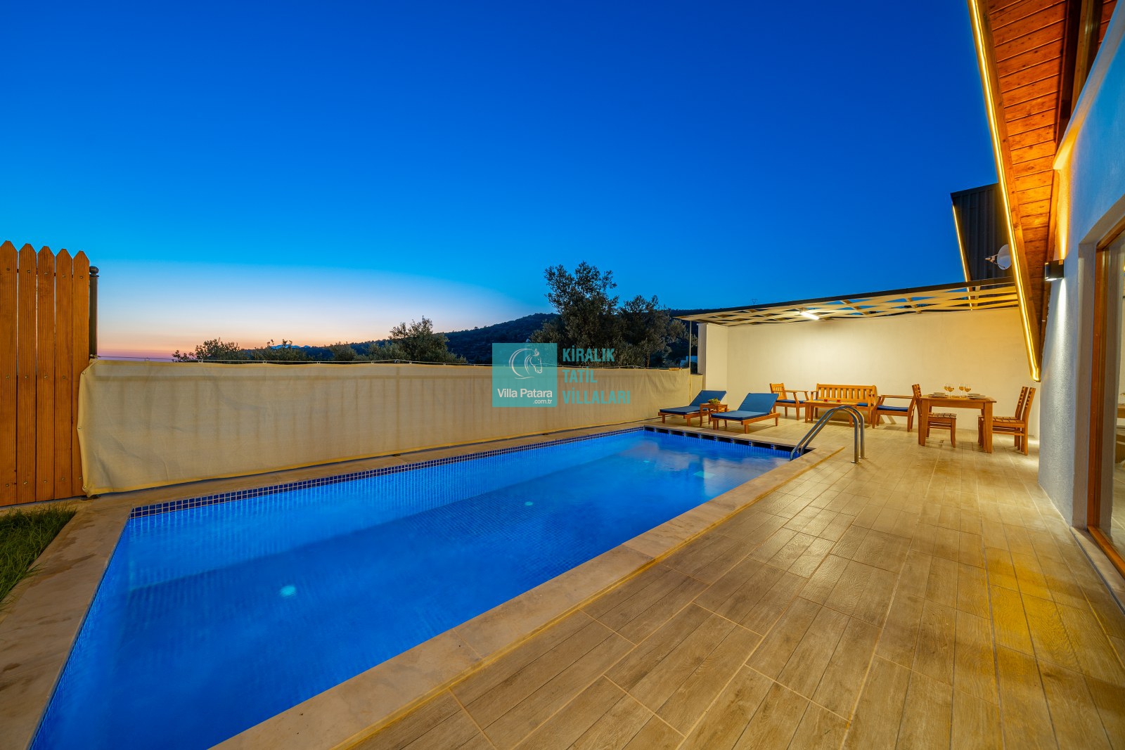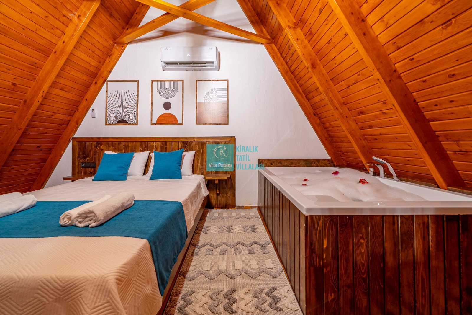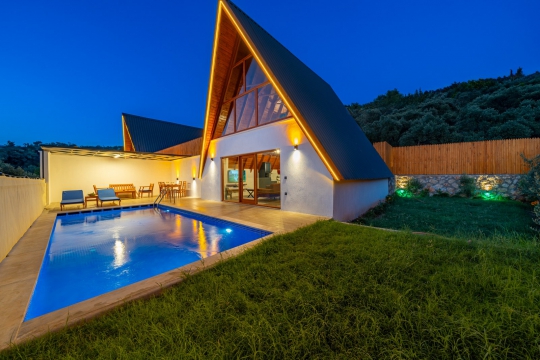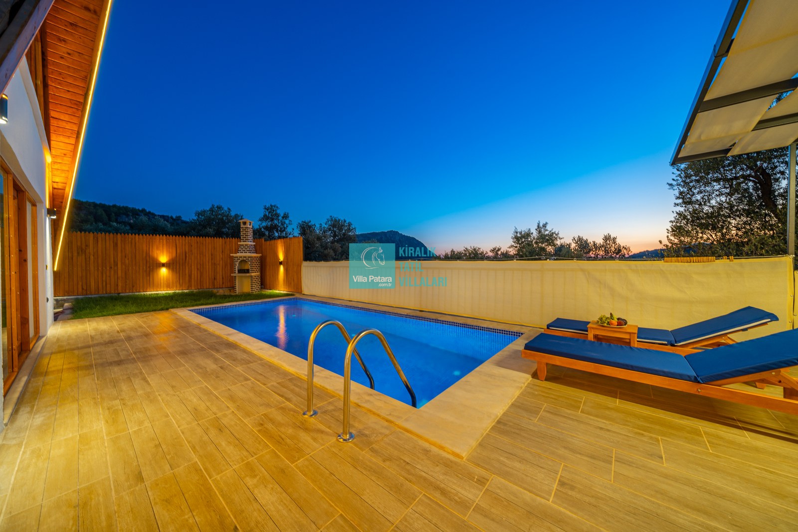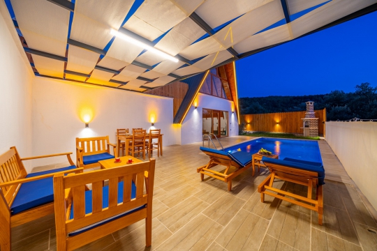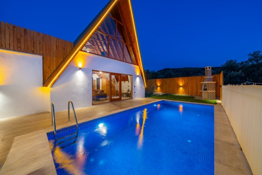 Villa Bungalov Mavi İrbeç 2, Kalkan Üzümlü mevkiinde 1 yatak odalı 2 kişi kapasiteli muhafazakar, doğa manzaralı size özel kiralık villamızdır. Balayı çiftlerimiz için özel olaralk dizayn edilen villamızın havuz ve bahçe terası korunaklı olup dışarıdan görünmemektedir. Ahşap tasarımlı villamız en ince ayrıntısına kadar düşünülerek eksiksiz araç-gereçli ve full eşyalı olarak dizayn edilmiştir. Size özel havuzu sayesinde tüm yılın vermiş olduğu yorgunluğu üzerinizden atabilecek ve tatilinizin hiç bitmemesi isteğini uyandıracaktır. Doğa içerisinde sizlere ferah ve konforlu bir tatil imkanı sunan villamız siz değerli misafirlerimizi beklemektedir.