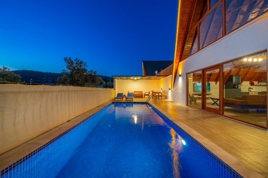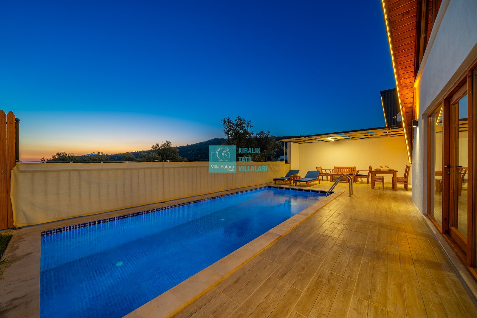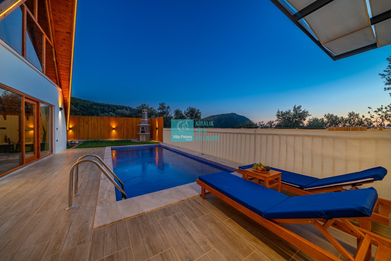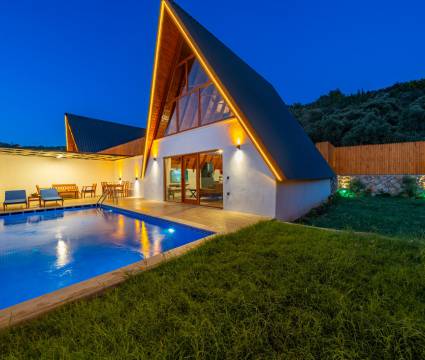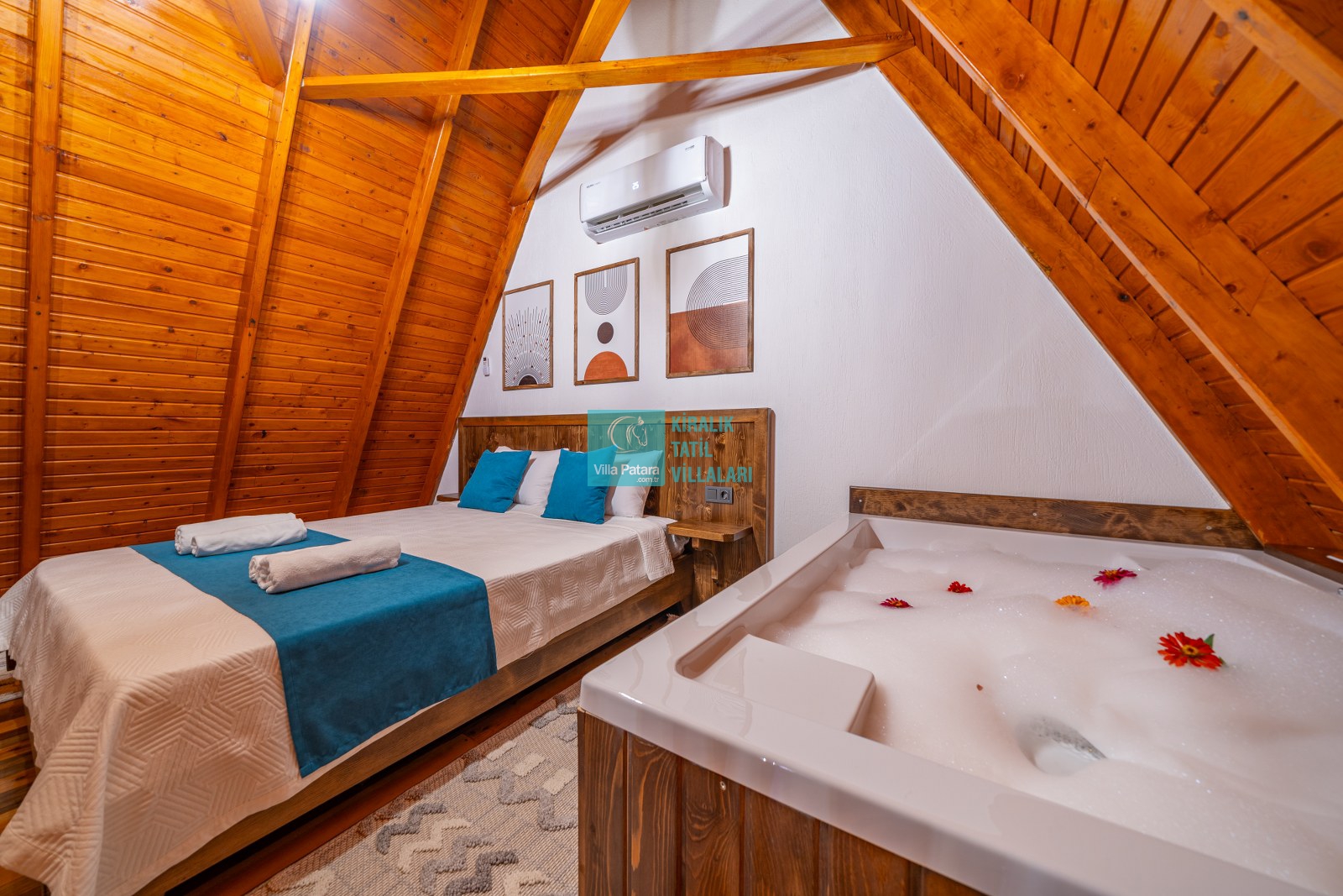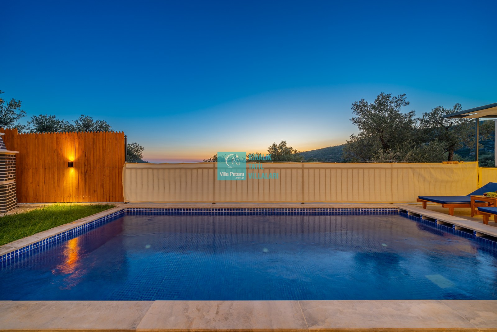 Villa Bungalov Mavi İrbeç 2, Kalkan Üzümlü mevkiinde 1 yatak odalı 2 kişi kapasiteli muhafazakar, doğa manzaralı size özel kiralık villamızdır. Balayı çiftlerimiz için özel olaralk dizayn edilen villamızın havuz ve bahçe terası korunaklı olup dışarıdan görünmemektedir. Ahşap tasarımlı villamız en ince ayrıntısına kadar düşünülerek eksiksiz araç-gereçli ve full eşyalı olarak dizayn edilmiştir. Size özel havuzu sayesinde tüm yılın vermiş olduğu yorgunluğu üzerinizden atabilecek ve tatilinizin hiç bitmemesi isteğini uyandıracaktır. Doğa içerisinde sizlere ferah ve konforlu bir tatil imkanı sunan villamız siz değerli misafirlerimizi beklemektedir.