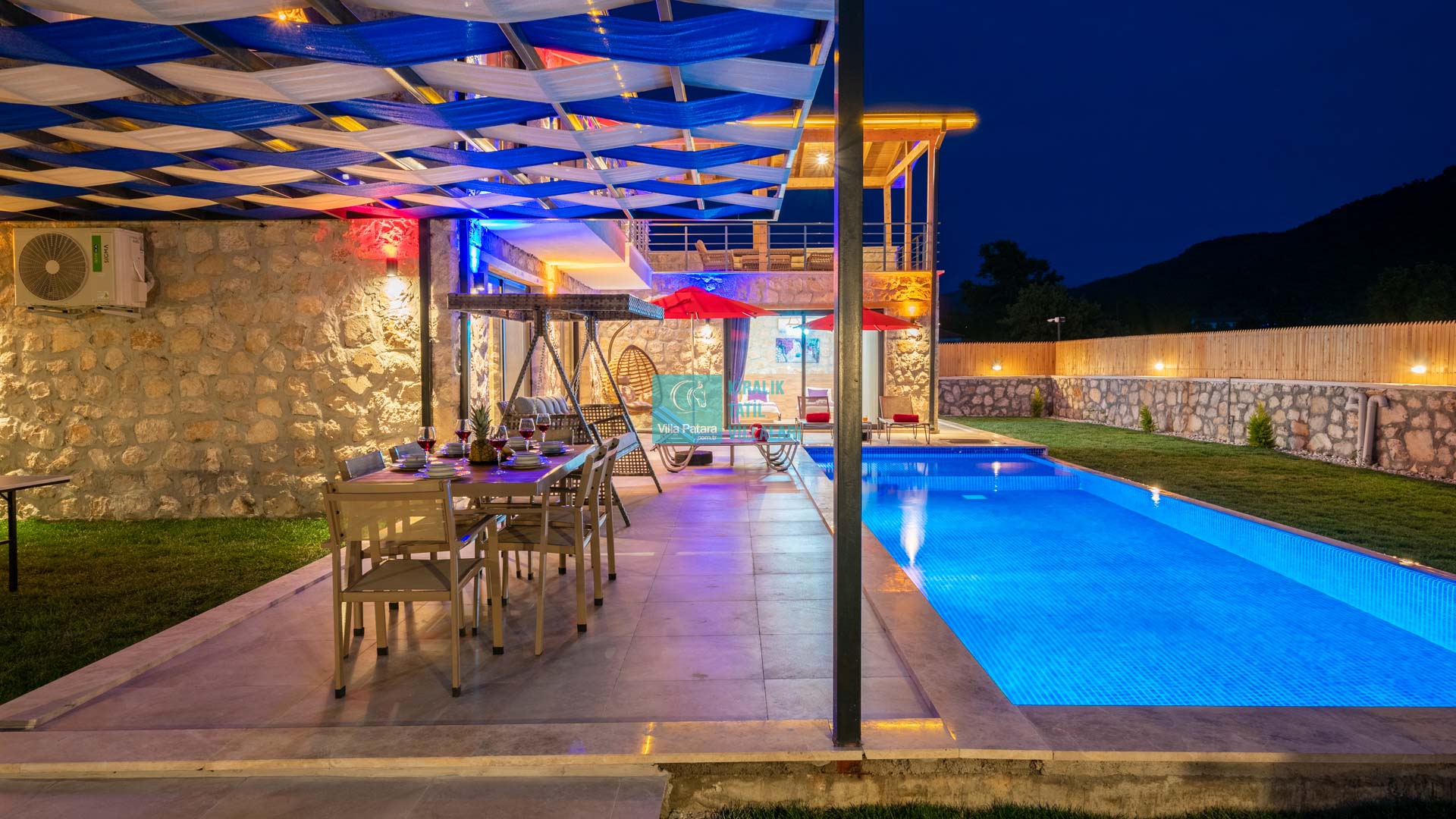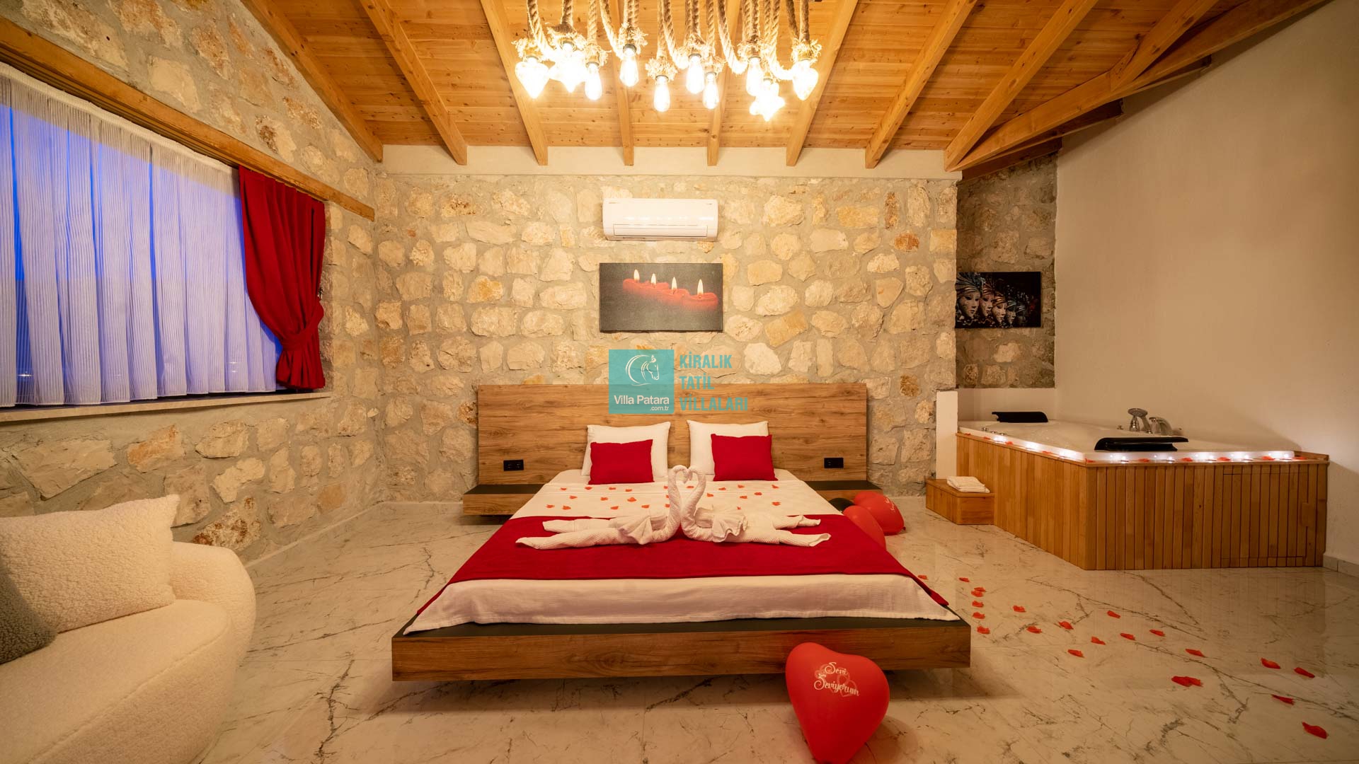 Kalkan Sarıbelen mevkisinde bulunan, sessizliğin, huzurun hakim olduğu bir villada tatil isteyen çiftlerimiz ve aileler için oldukça uygun bir seçenektir. Muhafazakar villalar ve Geniş Bahçeli villaları kategorisinde yer alan villamız, 2 yatak odası ile 4 kişilik konaklama kapasitesine sahiptir. Havuzu korunaklı ve bahçesi dışarıdan görünmeyen Işıklı, mahremiyete önem veren çiftlerimiz ve aileler için huzur dolu bir tatil fırsatı sunuyor. Ayrıca villamızın ebeveny yatak odasında 2 kişilik jakuzili konforude yer almaktadır.