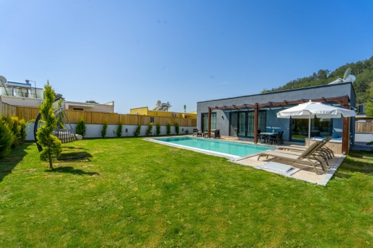 Villamız, 2022 yılı nisan ayında tamamlanmış olup 4 kişilik konaklama kapasitesine sahip lüks tatil severlere hitap eden şık bir tatil kompleksidir.