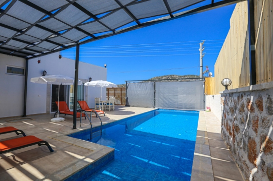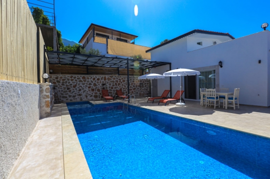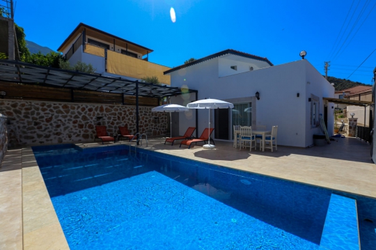 Şık mobilyalarla donatılmış villamız doğa içerisinde konumludur ve Kalkan merkez ve plajlar 3-5 dk.lık sürüş mesafesindedir.
