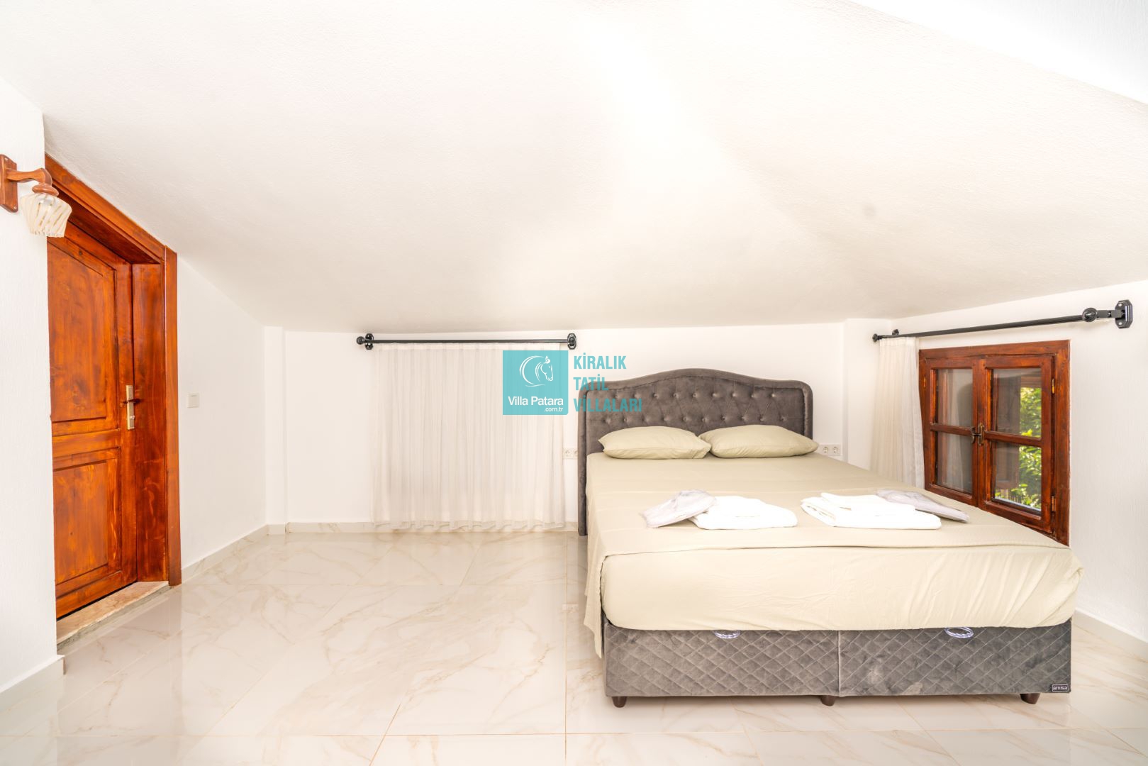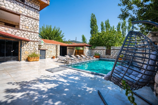 Kalkan Bezirgan bölgesinde bulunan Villa Şah Bezirgan, 3 yatak odalı 6 kişi konaklama kapasitelidir. Kalkanın muhteşem doğasına sahib olan bezirgan bölgesinde muhafazakar yapıya sahip olup,taş mimarisi ve luks tasarımı ile dikkat çeken Villa Şah Bezirgan içerisinde bulunan ısıtmalı havuz, hamam, sauna ve jaluzi gibi konforlu olanaklar sayesinde yaz kış ailecek lüks ve keyifli tatil imkanı sunmakta. Böylesine muazzam bir tatil fırsatı için sizleri Villa Şah Bezirgan bekliyoruz.