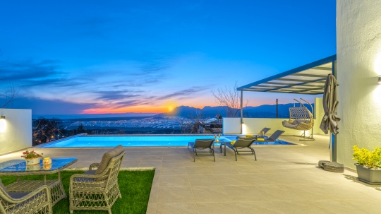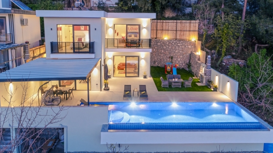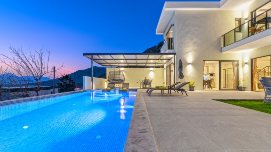 Villa Şans Kaş Kalkan Üzümlü mevkiinde konumlanan iki yatak odalı 4 kişi kapasiteli jakuzili Muhafazakar Aile ve balayı çiftleri için doğanın huzur verici atmosferinde konumlanmış muhteşem patara deniz manzaralı sonzuzluk havuzlu villamızda unutulmaz tatil bekliyor. Üzümlü'de bulunan bu villa, eşsiz deniz manzarasıyla göz kamaştırıyor. Modern tasarımıyla dikkat çeken villamız, geniş ve ferah iç mekanlarıyla konforunuzu ön planda tutuyor.