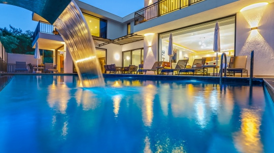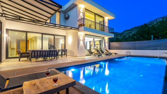 Kalkan İslamlar Mevkiinde bulunan kiralık lüks villa, sessiz sakin bir konumda sevdikerinizle huzurlu bir tatil isteyen ailelerimiz için oldukça uygun bir seçenektir. Muhafazakar villalar ve jakuzili villalar kategorisinde yer alan villamız, 4 yatak odası ile 9 kişilik konaklama kapasitesine sahiptir. Havuzu korunaklı ve bahçesi dışarıdan görünmeyen Villa White Rock mahremiyete önem veren aileleriniz ve arkadaş grupları için huzur dolu bir tatil fırsatı sunuyor. Villamızın 3 tane yatak odasında banyo-tuvalet vardır, diğer yatak odasının ise banyo-tuvaleti oda içinde değil hemen yanında bulunmaktadır.