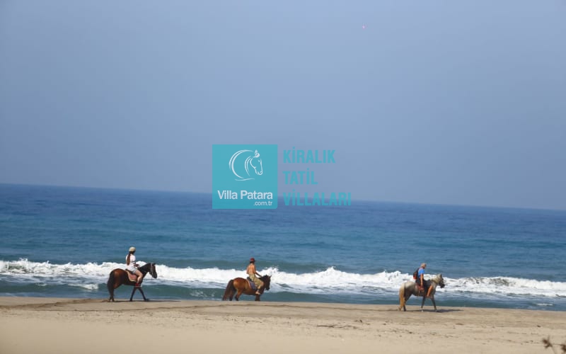 Tam Gün Sahil & küçük Kum Tepeleri Gezisi: Patara'daki ahırlarımızdan başlayarak düz parkurlarda ormanın içinden geçip, kalıntıları görebileceğimiz bakış açısına ulaştıktan sonra sahile giden ana yola iniyoruz. Kalıntıların arasından geçip sahile yakın küçük kum tepelerine ulaşıyoruz, plaja varmadan, bu kum şeridinin üzerinden geçerek sahile ulaşıyoruz. Sahil boyunca ancak yumurtadan çıkan kaplumbağaların mevsimi değilse binebiliriz. Kendine güvenen bir biniciyseniz suya da girebilirsiniz (ancak kaplumbağanın yumurtadan çıkma zamanıysa, suya girmeyeceğiz, daha sonra sahil kenarındaki küçük kum tepelerinin tepesine tırmanacağız ve oradan gün batımının veya gün batımının tadını çıkaracağız. ) Bundan sonra dinlenmek için duruyoruz. Dinlendikten sonra sahil boyunca nehre doğru ilerlemeye devam edeceğiz, burada yüzmek ve mangal yapmak için mola vereceğiz, ardından Patara'daki ahırlarımıza geri sahil veya orman boyunca bir gezintiye çıkacağız.