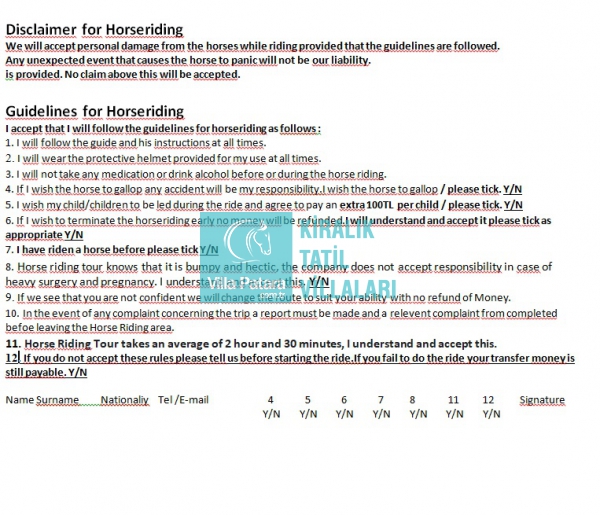 GALOP TURU : Sabah Temmuz , Agustos ta SABAH 06:00 iyi derece biniciler içindir . Biniciyim deyip bu turu almanız bunu yapma anlamına gelmez tur başlar rehber sizin bunu yapıp yapamayacagınıza karar verir yapacak durumdaysanız galop turu devam eder, eger yapamayacak durumdaysanız.normal tur olarak devam eder. Tur kalabalıksa diger kişileri engelliyorsa turunuz iptal olur ödeme geri ödenmez.