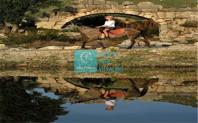Tam Gün: Likya Yolu boyunca Patara'dan Kalkan yönüne hareket ediyoruz, ormanın içinden geçip antik kalıntıları geçiyoruz. Bir saat sonra ilk mola verdiğimiz yerden Patara plajına ve ören yerlerine kuş bakışı veririz, buradan solunuzda Kalkan Adalarını da görebilirsiniz. Ardından ata binmeye devam ediyoruz ve öğleden önce sahilde yüzmek, dinlenmek ve barbekü yapmak için mola vermek üzere Firnaz Koyu'na varıyoruz. Daha sonra su kemeri boyunca Patara'ya geri dönüyoruz.