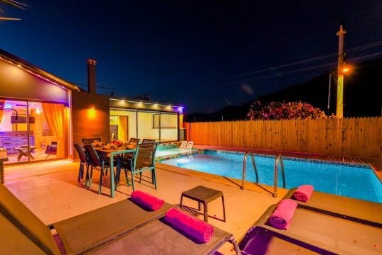 Dünyaca ünlü Patara Plajı'na yalnızca 2 km uzaklıkta bulunan , her 2 odasında da jakuzi ve duble yatak bulunan, kapalı ısıtmalı veya soğutmalı havuzlu, içerisinde Türk Hamamı ve Sauna bulunan, bahçeli, balayı villasıdır. Villamız aynı zamanda 4 kişi kapasiteli olup, 2 çiftin konaklaması için uygundur. Modern ve otantik karışım kullanılarak dekore edilmiştir. Son derece zevkli döşenmiş olan villamız, Patara merkeze yürüme mesafesindedir. Balayı çiftleri ve Muhafazakar aileler için ideal bir seçimdir. Villamız, romantik ve keyifli bir tatil isteyen balayı çiftleri için ideal bir seçim olacaktır.