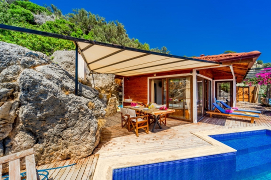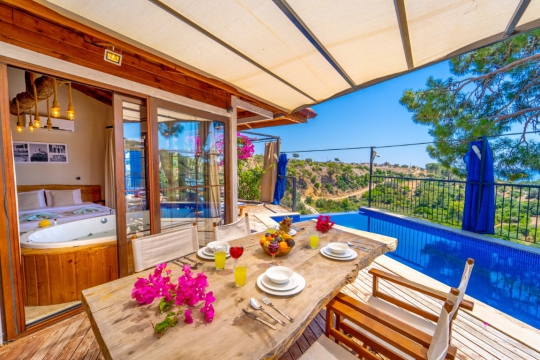 Patara Yalı mevkisinde bulunan kiralık balayı villası, şehrin gürültüsünden ve kirliliğinden uzak doğa içinde keyifli bir tatil isteyen çiftlerimiz ve ailelerimiz için oldukça uygun bir seçenektir. Muhafazakar villalar ve balayı villaları kategorisinde yer alan villamız, 2 yatak odası ile 4 kişilik konaklama kapasitesine sahiptir. Havuzu korunaklı ve bahçesi dışarıdan görünmeyen villamız, deniz manzarasına sahiptir. Bütün detayların düşünülmüş olduğu jakuzili villamızda, unutulmaz bir tatil sizleri bekliyor.