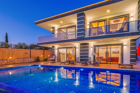 Kalkan Çavdır köyünde bulunan kiralık balayı villası, doğa içinde, sessiz sakin bir konumda tatil isteyen ailelerimiz için oldukça uygun bir seçenektir. Muhafazakar villalar ve balayı villaları kategorisinde yer alan villamız, 2 yatak odası ile 4 kişilik konaklama kapasitesine sahiptir. Havuzu korunaklı ve bahçesi dışarıdan görünmeyen Villa Eftelya , mahremiyete önem veren çiftlerimiz için huzur dolu bir tatil fırsatı sunuyor. Ayrıca yatak odasında misafirlerimizin rahatlaması için 2 kişilik jakuzi konforu da sağlamaktadır.