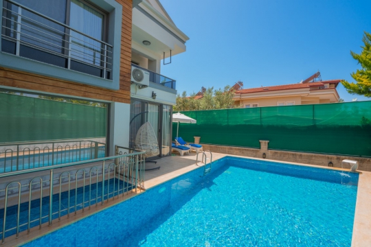 Havuz alanı çimçit perdeleme sistemi ile korunaklı hale getirilmiş olan villamız muhafazakar aileler için de uygundur.