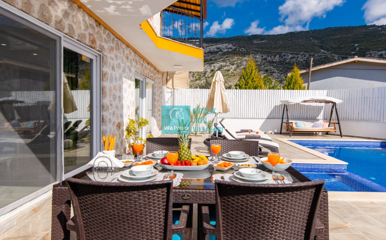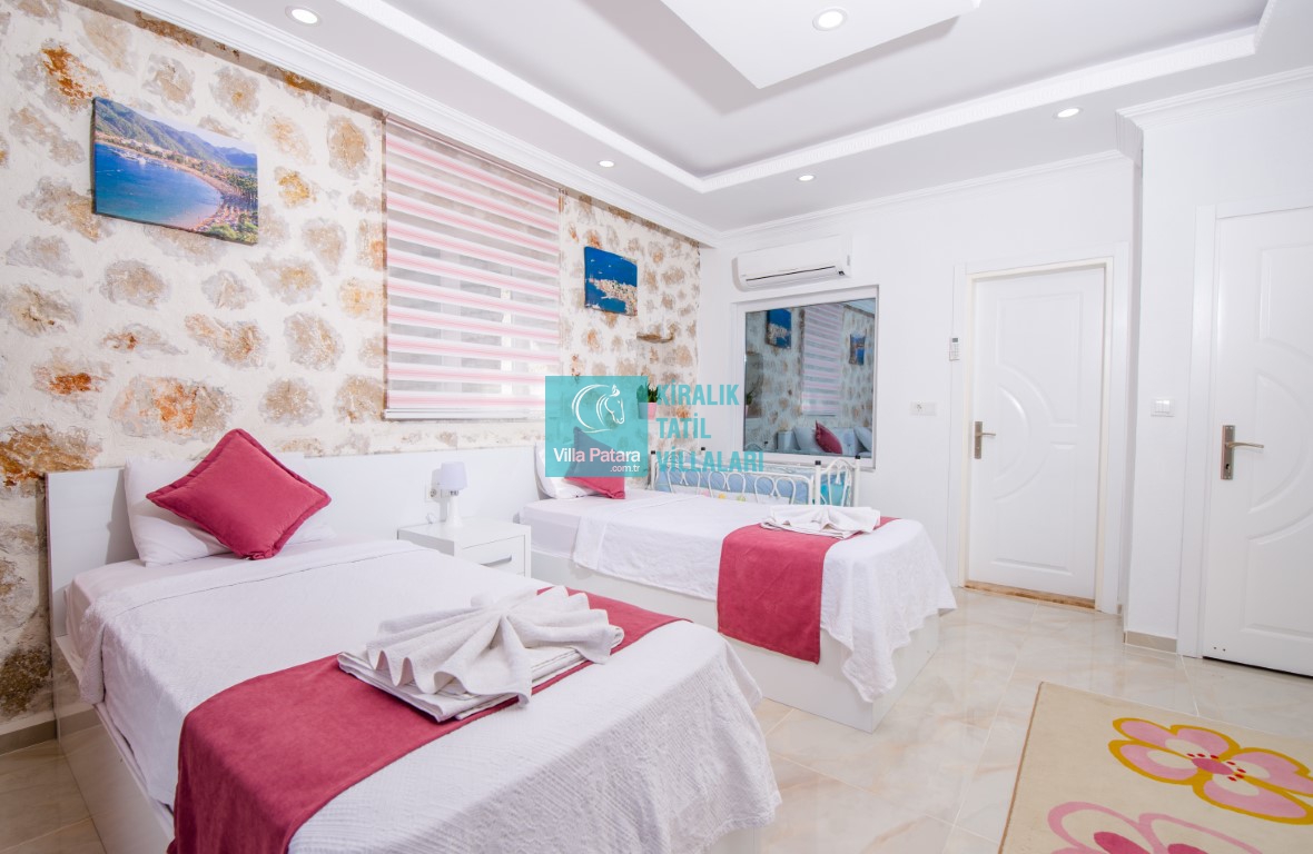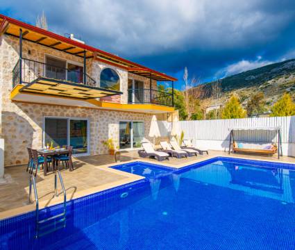 Villa Sıla Kalkan’ın İslamlar bölgesinde bulunmaktadır. 2 yatak odası ve 4 kişilik kapasitesiyle size özel bir villadır. Villamızın sahip olduğu özenli lüks dekoru, düşünülmüş ince dokunuşları ve modern dizaynı villa tatilinizi keyiflendirecek ve siz değerli misafirlerimizde tatilinizin hiç bitmemesi isteğini uyandıracaktır. Villamızın havuz ve bahçe kısmı korunaklı olup havuz keyfini rahatça çıkarmanızı sağlar. Ayrıca villamızda bulunan jakuzi sayesinde keyifli ve huzurlu günler geçirirken ruhunuzu ve bedeninizi dinlendirme fırsatı bulacaksınız. Ailenizle, arkadaş gruplarınızla veya eşinizle güzel bir tatilgeçirmeniz için özenle dizayn edilmiş villamıza siz değerli misafirlerimizi beklemekteyiz.